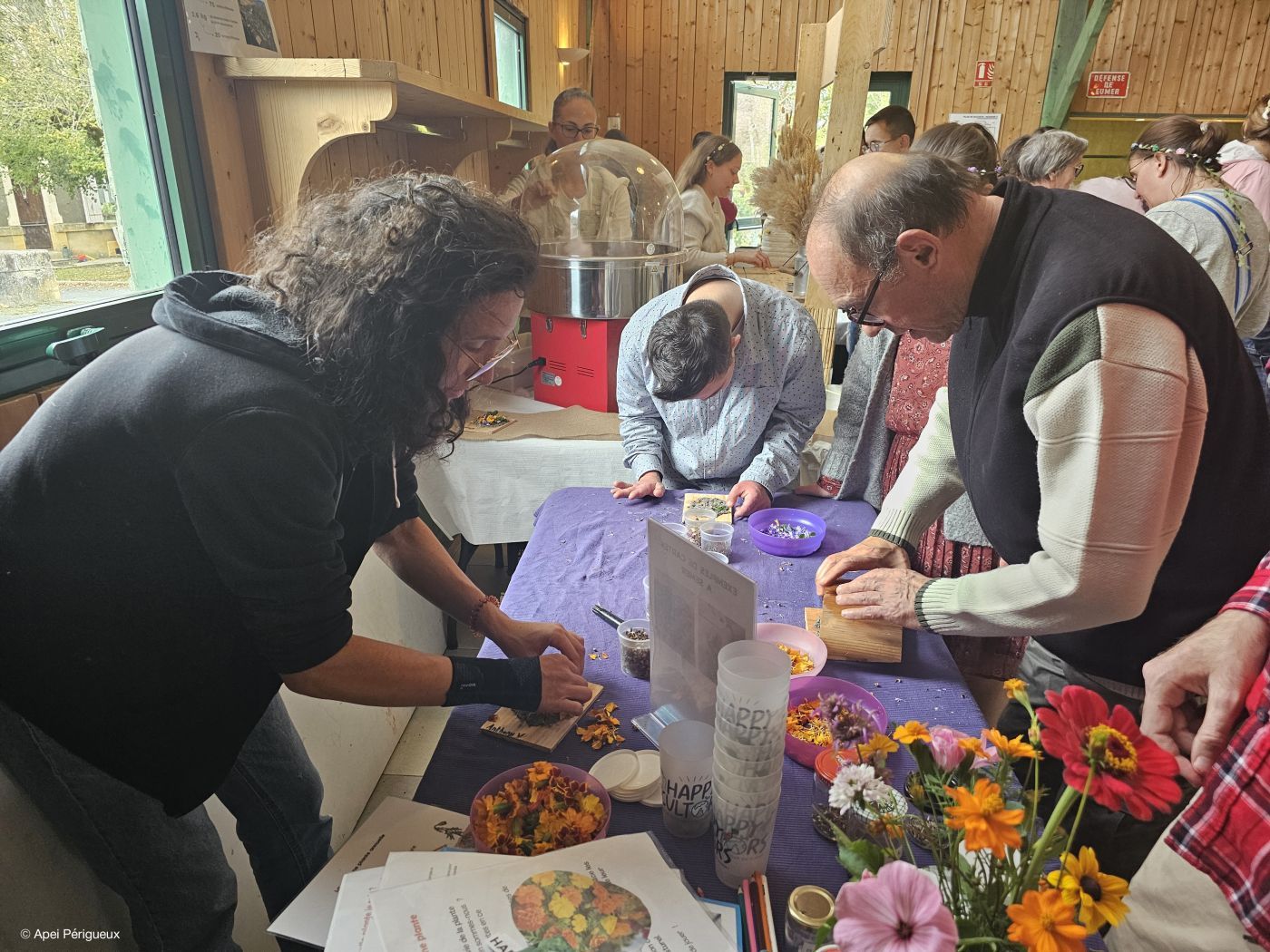 Tout au long de l’après-midi, plusieurs stands pensés et animés par les professionnels ont rythmé la fête : barbe à papa, vente de produits artisanaux réalisés par les résidents (notamment le traditionnel vin de noix), et un atelier de création de cartes à semer, qui a rencontré un joli succès.